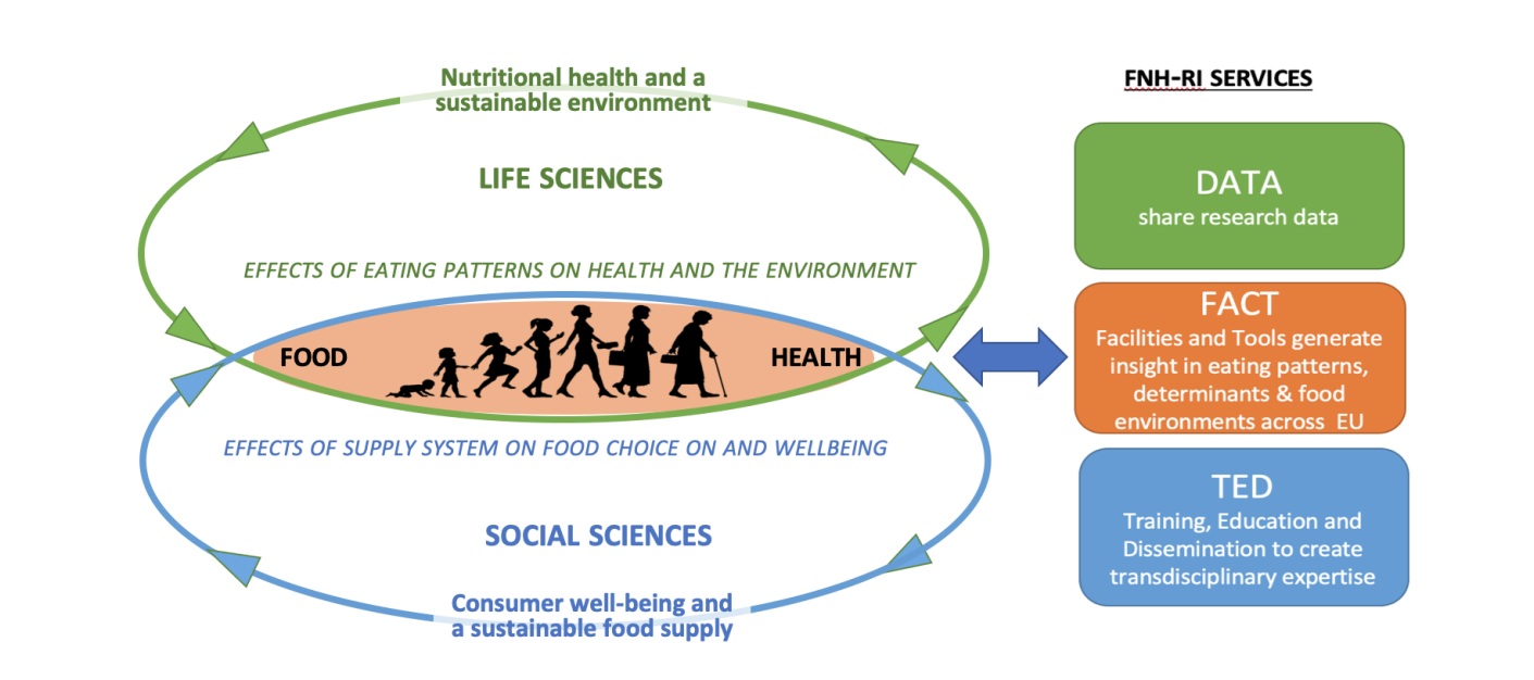 FNH-RI is conceived as a European knowledge hub that gives researchers access to data, facilities, tools, training, education and dissemination services across food, nutrition and health research.